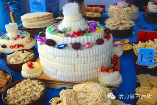 美味之一奶食:草原上的食品之首便是奶食。況且察哈爾人民在歷史上為宮廷專供“奶食”的部落,所制作的奶食品品種豐富、名目繁多,做法千姿百態(tài)。奶食在蒙語中稱"查干意德(ChagaanYidee)",俗稱白色食品。奶食大體可分為液態(tài)奶食、固態(tài)奶食兩類。液態(tài)奶食有鮮奶、淖勞日、爵亥、白油、酸油液、黃油、酸油渣、乳清、酸奶、熟酸奶、酸乳等。固態(tài)奶食有奶皮、奶豆腐、奶雜子、松葫蘆、酸奶酪。奶食品中含有大量的氨基酸、蛋白質(zhì)、油脂、微量元素,對人體機能有著不可缺少的營養(yǎng)成分,增強免疫力,有保健作用。奶食也被視為珍品,每逢拜年、祝壽、招待賓客、喜慶宴會等首先以品嘗奶食、敬獻(xiàn)奶酒為最美好的祝愿,這是一種神圣的禮節(jié)。