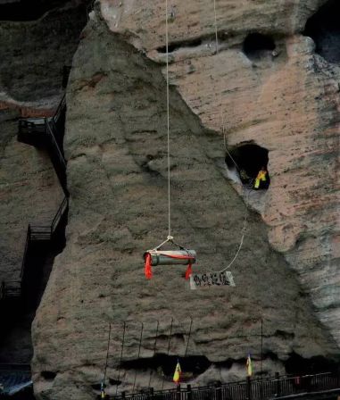 由于龍虎山崖墓下臨深淵,地處絕壁,懸棺是怎樣安放上去的,千百年來(lái)一直都是個(gè)謎,龍虎山崖墓也因此蒙上了一層神秘的色彩,產(chǎn)生了種種神話傳說(shuō):有人說(shuō)這洞里的東西,是神仙用金絲線吊上去的;也有的說(shuō)這洞里裝的是無(wú)字天書、金銀財(cái)寶。