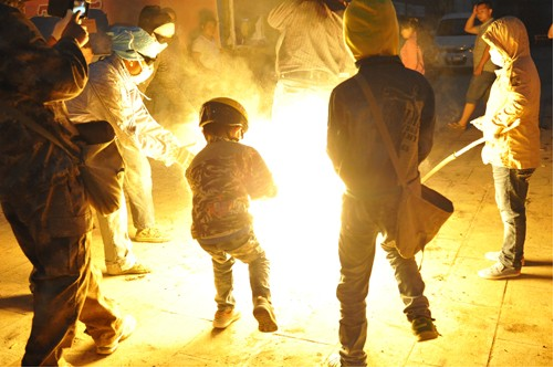 不到黃昏,鞭炮聲就響起來了。新生兒的父親點(diǎn)燃火把后,孩子們迫不及待地拿著小火把和松明粉,跑來跑去燒新生兒的的各種親戚,大人們樂呵呵地接受孩子們噴灑過來的火焰,并一致說著很吉祥的祈愿祝福語。“從此晦氣不在嘍!”、“一年更比一年好呀!”、“紅紅火火又一年”。男女老少在火把樹下吃喝玩樂,其樂融融。糖、炒蠶豆、梨、蘋果等被大家傳來傳去,新生父親挨個向親友敬酒。親友鄰居喝著喜酒,一致祝福新生兒安康成長,將來富貴吉祥。