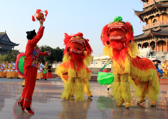 又稱“獅燈”,歷史悠久。從北方到南方,從城市到鄉(xiāng)村,逢年過節(jié)及慶典盛世都可以見到歡快的舞獅活動,把老百姓的歡喜心情表達得淋漓盡致,獅舞,獅子在中華各族人民心目中為瑞獸,象征著吉祥如意,從而在舞獅活動中寄托著民眾消災除害、求吉納福的美好意愿。獅舞歷史久遠,唐宋詩文中多有對獅舞的生動描寫?,F(xiàn)存獅舞分為南獅、北獅兩大類,南獅具有較多的武功高難技巧,神態(tài)矯健兇猛;北獅嬌憨可愛,多以嬉戲玩耍為表演內容;根據(jù)獅子假型制作材料和扎制方法的不同,各地的獅舞種類繁多,異彩紛呈。