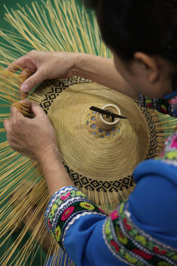 作為毛南族文化特征的代表,花竹帽是男女青年的定情物,象征著吉祥幸福;可遮陽避雨;它還是珍貴禮品,可饋贈嘉賓好友。這一民間工藝經(jīng)過毛南人一代一代地不斷改進,發(fā)展成了精美的民族工藝品,不僅為毛南族的青年、婦女所喜愛,還遠(yuǎn)銷外地,并在全國少數(shù)民族工藝品展覽展銷中獲得好評。