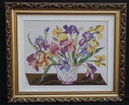 一般畫(huà)面較大,多數(shù)復(fù)制名畫(huà)、人物和風(fēng)景照片。用線(xiàn)顏色往往達(dá)數(shù)百種,特別強(qiáng)調(diào)色階、色相的過(guò)渡,并注重人物神態(tài)的刻畫(huà)。作品常作為大型建筑的室內(nèi)裝飾。