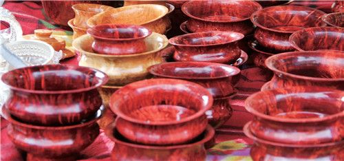 加查的木碗,還有一種是用雜木制成,具有防毒功能,非常名貴。這種木碗的選材非常講究,是用一種寄生的植物,藏語名為“吧”,做出來的木碗木質(zhì)黝黑透亮,紋路非常細(xì),若是配上銀飾,則可以十分明顯地預(yù)防毒藥,這在以前,可是日常生活和外出旅游的最理想餐具。