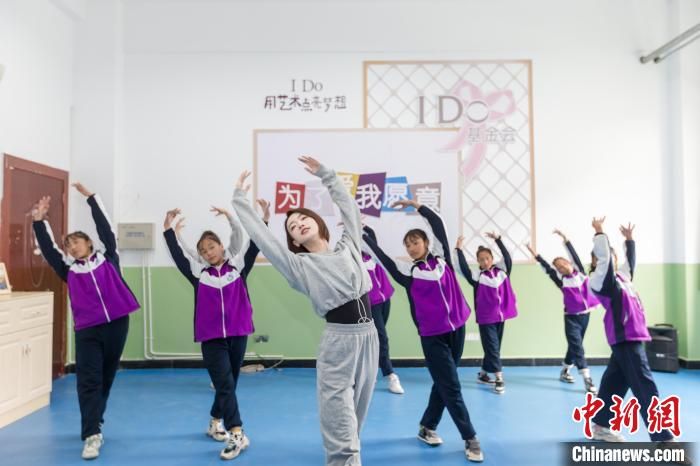 參加I Do基金會(huì)第十四屆愛心西藏行時(shí),青年演員吳謹(jǐn)言(左三)作為“藝術(shù)夢(mèng)想教室”的藝術(shù)代課老師 北京愛度公益基金會(huì)供圖