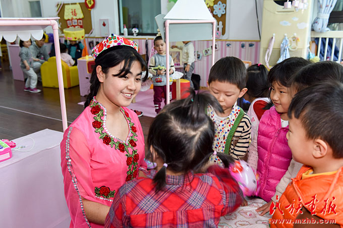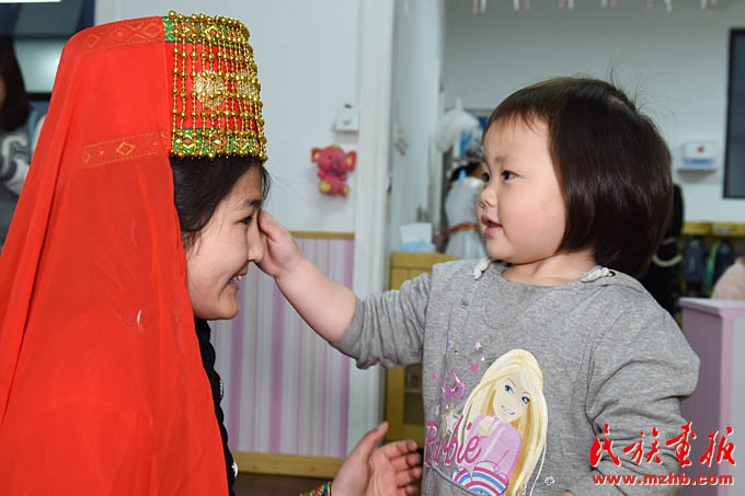 自2014年首場(chǎng)“民族風(fēng)吹進(jìn)幼兒園,愛(ài)心曲唱暖身邊人”公益活動(dòng)獲得積極反響后,幼兒園黨支部、工會(huì)、團(tuán)支部牽手園區(qū)民族團(tuán)結(jié)共建單位,走出校園、貼近社區(qū),以愛(ài)心義賣、義拍、定向捐助等方式為園區(qū)少數(shù)民族困難家庭送去關(guān)懷。在近幾年的園區(qū)民族工作實(shí)踐中,天恒名都幼兒園的“家、校、社、企”聯(lián)動(dòng)模式不斷發(fā)展創(chuàng)新,培育孵化出少數(shù)民族(幼教)實(shí)習(xí)點(diǎn)、少數(shù)民族志愿者服務(wù)隊(duì)等形式的實(shí)習(xí)模式。2013年至今,幼兒園已為上海市群益職業(yè)技術(shù)學(xué)校的“新疆班”學(xué)生210人次提供了實(shí)習(xí)崗位。
