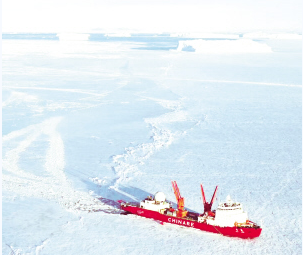 “雪龍”號是中國最大的極地考察船,也是中國唯一能在極地破冰前行的船只?!把垺贝秃?,能以1.5節(jié)航速連續(xù)沖破1.2米厚的冰層(含0.2米雪)。簡單來說,“雪龍”號船底有許多密封艙,破冰時先把后部的密封艙用幾千噸的海水灌滿;這樣船頭自然翹起,壓騎至冰面之上;然后再把前部的密封艙灌滿海水,后部的海水排出,利用船體前部的巨大壓強(qiáng),把堅(jiān)冰壓裂破開。