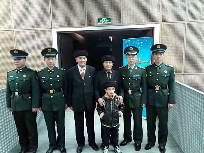 拉齊尼·巴依卡一家人在北京參加央視節(jié)目錄制后與邊防戰(zhàn)士合影。(網絡圖片)