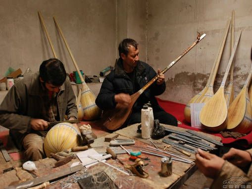 “冬不拉”是哈薩克族的撥弦樂器,現(xiàn)在使用的冬不拉有樂隊使用的高音、中音、和低音冬不拉,為凸底,琴腹梨形,多為紅松木,銅、骨制品,采用銅絲弦,自成一組,可演奏豐富多彩的音樂作品,也可用來伴奏歌舞。高、中音冬不拉也可以獨(dú)奏,也可彈唱。另有民間冬不拉為平底樺木制,經(jīng)纏絲弦為音品,琴腹為鏟形,張兩根弦,用右手彈奏,為哈薩克牧民家中必備的樂器,自彈自唱或獨(dú)自演奏?!榜R和冬不拉是哈薩克人民的翅膀”。哪里有帳篷,哪里就有冬不拉的琴聲。