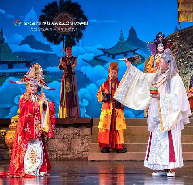 9月14日,作為第六屆全國少數(shù)民族文藝會演參演劇目,由青海省選送、青海省藏劇團(tuán)(黃南藏族自治州民族歌舞劇團(tuán))創(chuàng)作演出的藏戲《意卓拉姆》在央視網(wǎng)和國家民委門戶網(wǎng)站進(jìn)行演播。該劇講述了傳說中的仙女意卓拉姆與人間的諾桑王子相愛,歷經(jīng)挫折與磨難后終成眷屬的愛情故事,表現(xiàn)出意卓拉姆對愛情的忠貞不渝和諾桑王子堅韌不拔的意志。