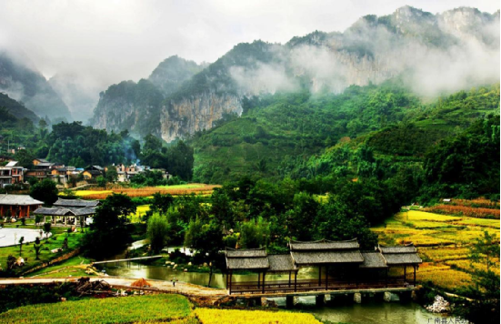 昔日壩美村房屋以落地和半樓居兩種桿欄式風(fēng)格為主,主屋用木板架成,四周用樹(shù)枝圍攏,再敷上泥巴、牛糞攔合成的粘土,非常通風(fēng)、保暖,上蓋瓦頂、抱廂、前置涼吧或圍欄,樓上住人,樓下關(guān)牲畜、堆雜物、當(dāng)?shù)貕炎宸Q麻欄樓?!稘h書(shū)·地理志》就有壯家“男耕女織”的記載:“男子耕農(nóng),種稻麻,女子蠶桑織績(jī)。”千百年來(lái)的刺繡技藝,之所以能夠代代相傳,延綿不絕,很大因素緣于它是不少壯族婦女賴以為生的基本技能。村民的食物、衣物、生產(chǎn)工具、生活用具基本上是自己生產(chǎn),寨子中隨處可見(jiàn)轉(zhuǎn)動(dòng)的水車、獨(dú)木舟、人工石磨、水磨、木碓、水紡織機(jī)、木榨油機(jī)、獨(dú)木風(fēng)箱、木梨粑、木背柴架、木梯、木菜板、木燈架、木三角獨(dú)輪推柴車、竹木水桶、葫蘆酒壺、木儲(chǔ)物器、石缸、石磙等生產(chǎn)生活工具。它們的古樸粗拙樣,凝固了歷史,傳遞著遠(yuǎn)古的文化信息。自2019年3月以來(lái),壩美景區(qū)暫停對(duì)外開(kāi)放進(jìn)行提質(zhì)升級(jí)改造。經(jīng)過(guò)一年多的建設(shè),一期工程已完成投資4億元,景區(qū)內(nèi)基礎(chǔ)設(shè)施及旅游產(chǎn)品業(yè)態(tài)都有了質(zhì)的提升。以世外桃源壩美景區(qū)為核心,以壯族文化為內(nèi)涵,以稻作田園景觀、普千村、冷熱泉等內(nèi)容為延伸,打造國(guó)內(nèi)首個(gè)集田園休閑度假、壯族文化體驗(yàn)、藝術(shù)創(chuàng)意創(chuàng)作、宗教朝圣等多重體驗(yàn)為一體的旅游度假區(qū),將通過(guò)改造民居、再造田園、以水為魂等方式打造現(xiàn)實(shí)版的“桃花源”。