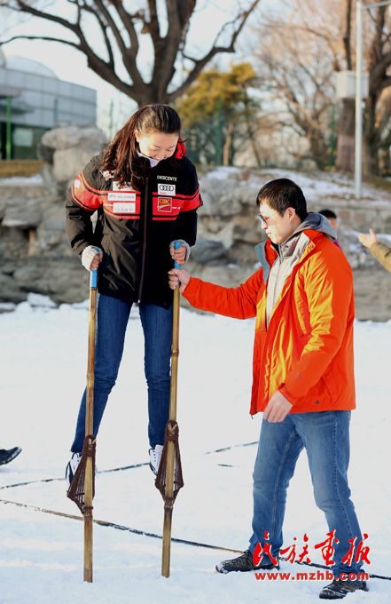 為了更好地將冰雪趣味健身賽事、冰雪健身體驗活動等送到全市各族群眾身邊,北京市民族傳統(tǒng)體育協(xié)會創(chuàng)造性地將綾球、高腳競速及板鞋競速等少數(shù)民族傳統(tǒng)體育項目與冬季冰雪相結(jié)合,整理、發(fā)展了雪地綾球、雪地高腳、雪地板鞋等項目,在現(xiàn)場進行展示交流,吸引大批群眾熱情參與。
