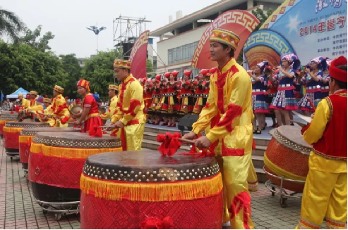 上林壯族八音是盛行于上林縣壯族居住的白圩鎮(zhèn)、大豐鎮(zhèn)、明亮鎮(zhèn)、澄泰鄉(xiāng)等地區(qū)的傳統(tǒng)民間音樂,它起源于廣東佛山地區(qū)。清朝道光年間,出于經(jīng)商的目的,不少廣東省佛山一帶的商人移民至上林定居,并將佛山的音樂帶到上林,聰明的白圩一帶的壯族先民吸收了佛山移民的音樂精華,并與本地的音樂相互融合,逐漸形成了極具壯民族特色的上林壯族八音。