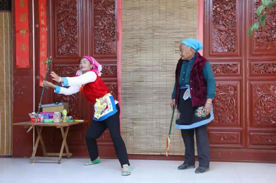 何松康,白族霸王鞭州級代表性傳承人,也是白族霸王鞭傳習所的負責人,傳習所就建在她們家一樓的堂屋里。
