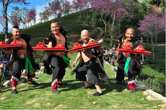 南澗“彝族跳菜”主要有“宴席跳菜”和“舞臺(tái)跳菜”兩大類?!把缦恕币卜Q“席間跳菜”或“實(shí)地跳菜”,是當(dāng)?shù)匾妥迦罕娫诮Y(jié)婚慶典、新房落成、迎接貴賓、給老人祝壽等重大喜慶場(chǎng)合,宴請(qǐng)賓客,為增加喜慶氣氛而跳菜,講究“吃著并快樂(lè)著”。另一類是“舞臺(tái)跳菜”,根據(jù)表演地點(diǎn)或舞臺(tái)大小又分為“舞臺(tái)跳菜”和“廣場(chǎng)跳菜”?!拔枧_(tái)跳菜”即舞臺(tái)上表演的跳菜,演員通常在20人左右,舞蹈動(dòng)作粗獷豪放、剛健有力,聲音高亢明亮。而“廣場(chǎng)跳菜”演員少則幾十人,多則可達(dá)幾百人,氣勢(shì)恢宏、整齊和諧。