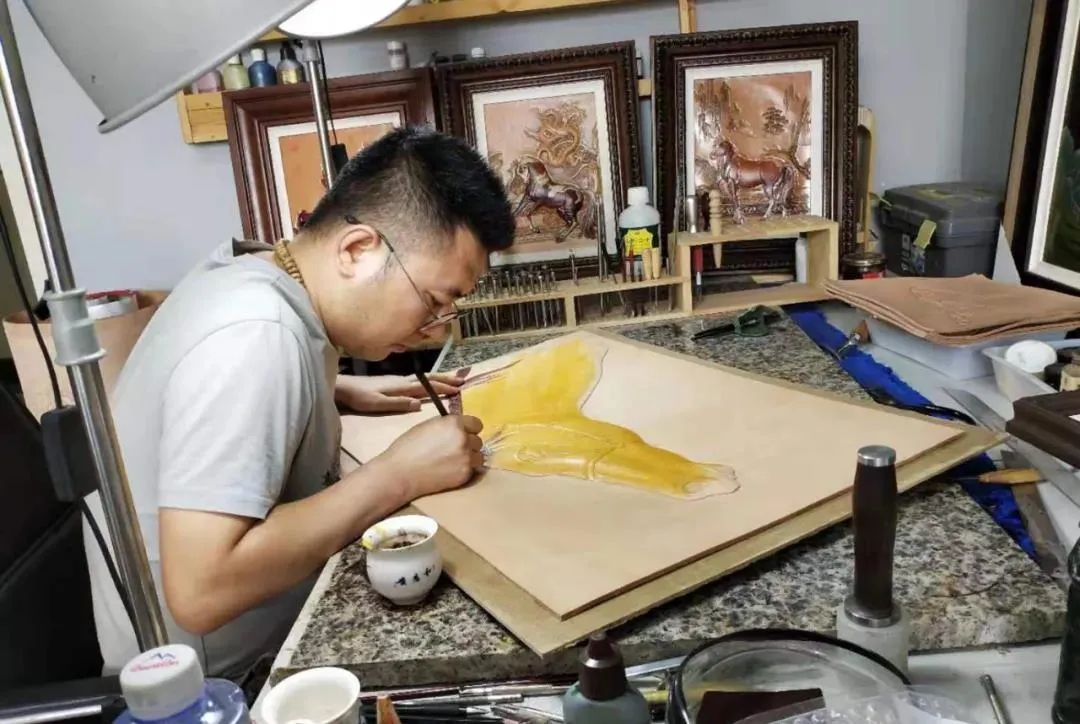 包頭市東河區(qū)皮雕畫非遺項目傳承人張衛(wèi)祥,2012年畢業(yè)于中央美術學院,受老師影響,畢業(yè)后一直致力于把皮雕與古代山水畫結合,使皮雕畫展現(xiàn)出古樸典雅的風格,許多皮雕作品屢屢獲獎。