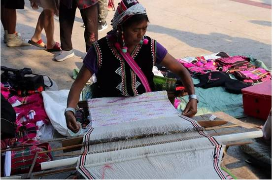 織錦是各民族生活中不可缺的勞作。紡線原料以棉纖維和麻纖維為主。 棉主要是草棉、白棉沙線、黑棉沙線、紅棉沙線,麻主要為苧麻和野生火麻。在織錦的過程中,婦女端坐在紡車前,凝神專注地操持著手中的活計。 織一匹布大約需要20天至一個月左右的時間。