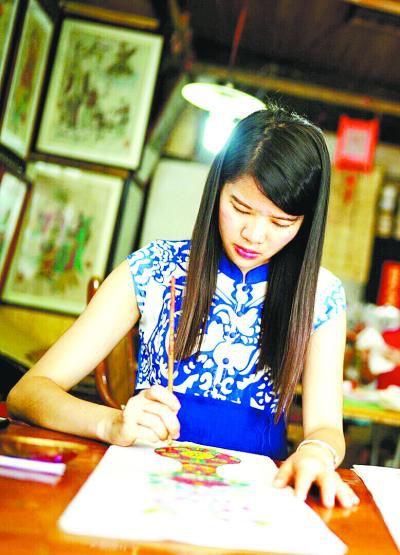 復(fù)業(yè)后,年畫(huà)鋪的生意和馮炳棠的生活一樣平平淡淡。直到2014年,一位活潑開(kāi)朗的姑娘的到來(lái),百年老鋪煥發(fā)了新的活力。這位姑娘正是劉鐘萍。