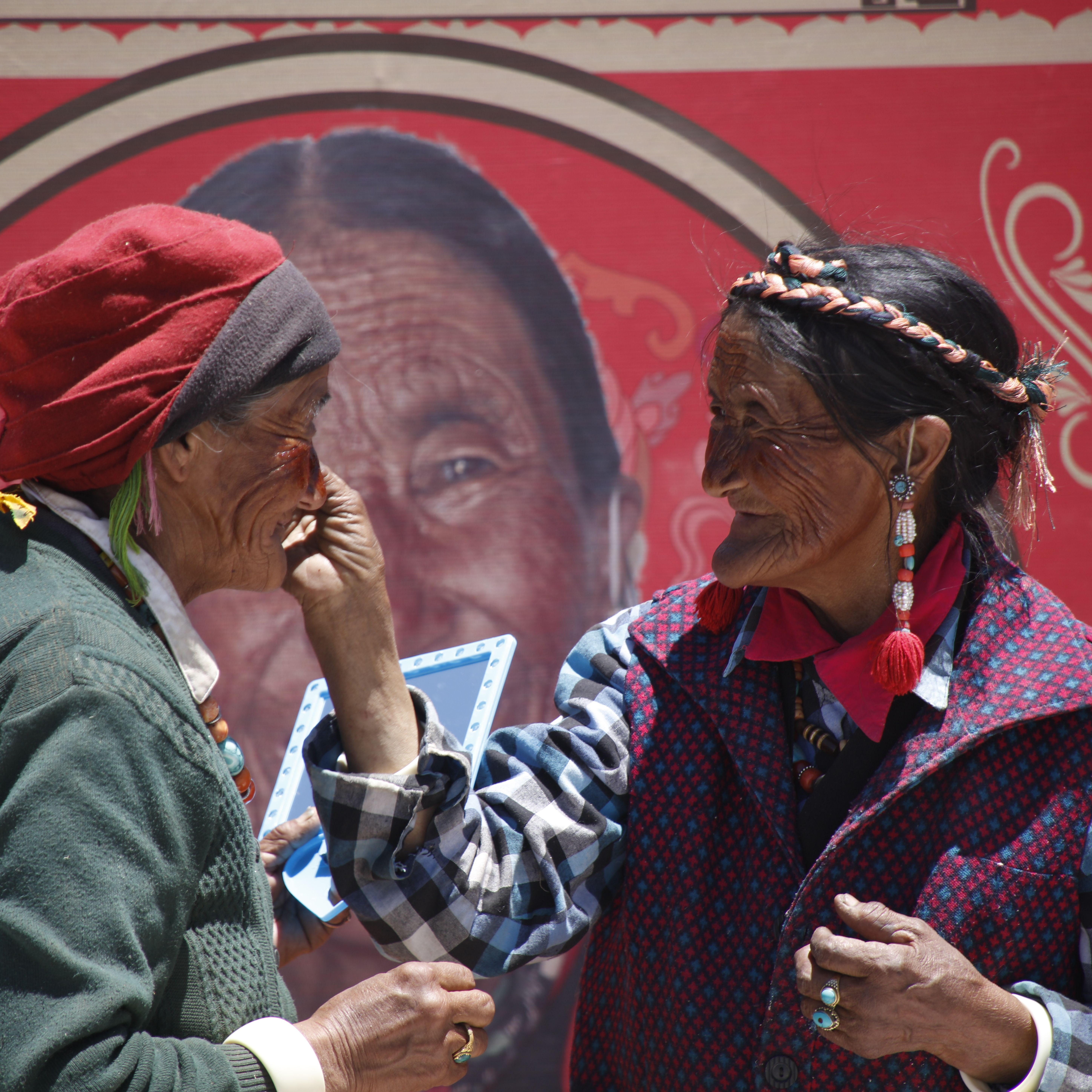 圖片說(shuō)明:用札達(dá)面膜防曬的老奶奶們