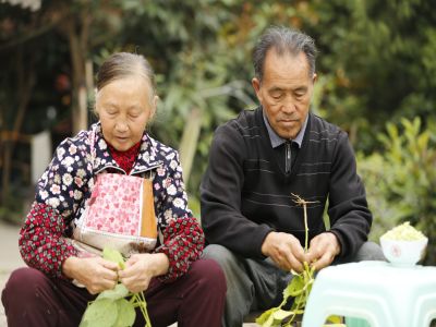 貴州貴陽(yáng)苗族老年人與兒童剝玉米