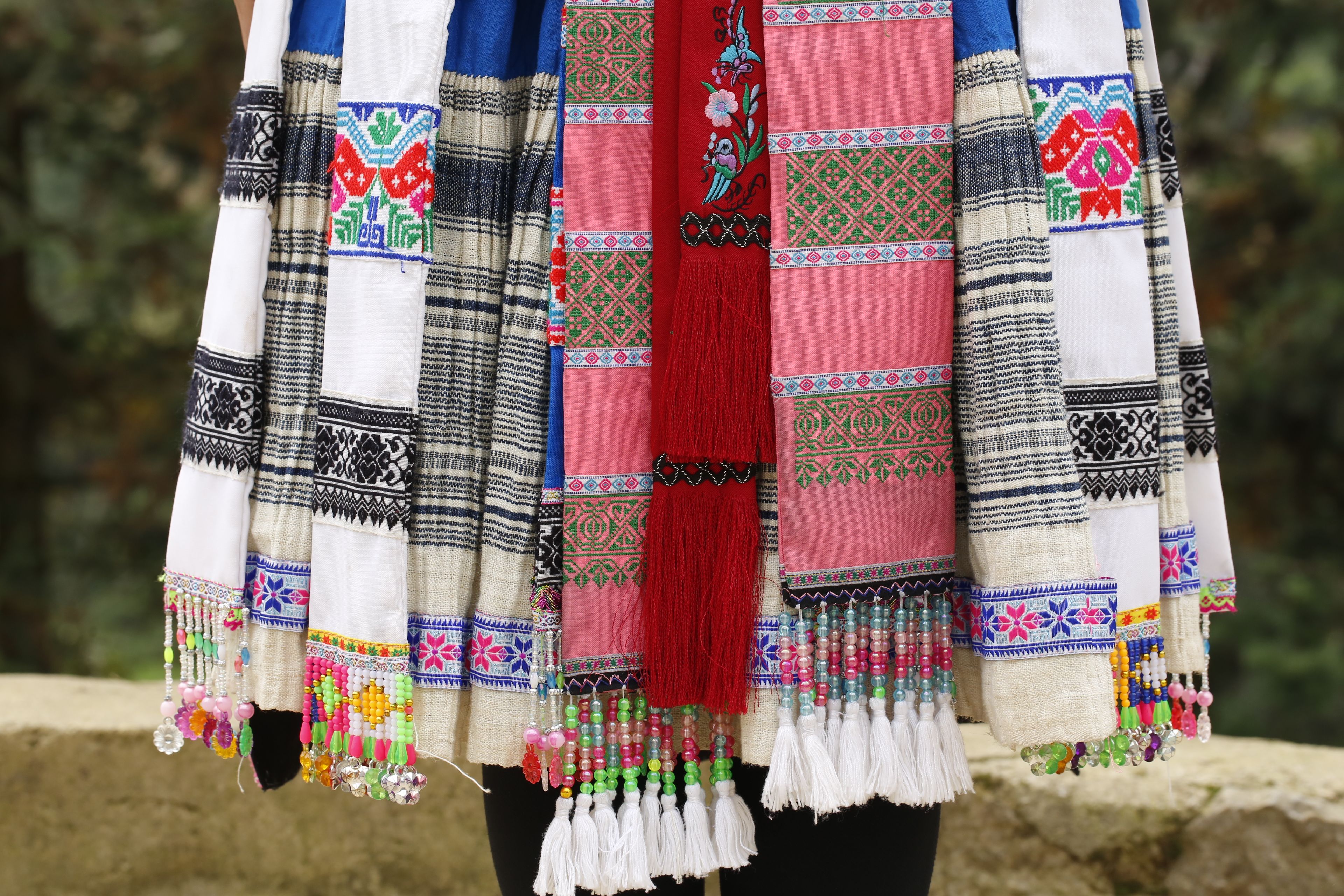 苗族女子服飾花帶百褶裙-裙擺側(cè)面繡花及印染