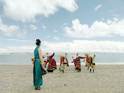 圖片說明:藝術團在湖邊練習磁石彈舞